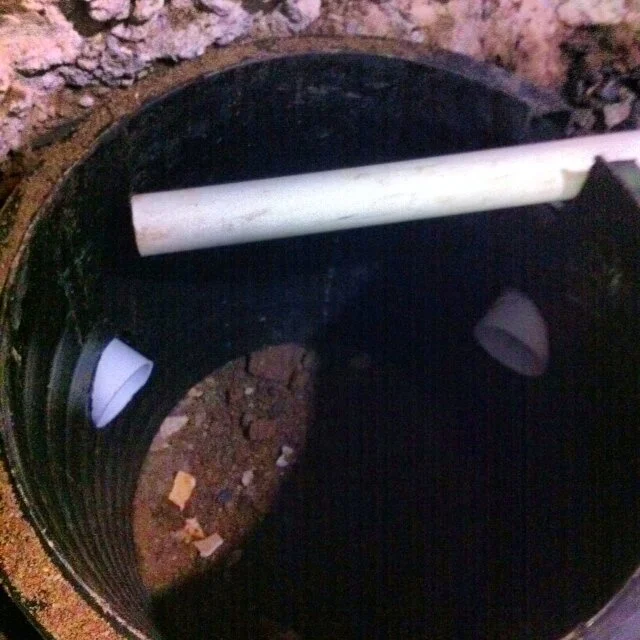 PE pipe entering the sump at 8" deep